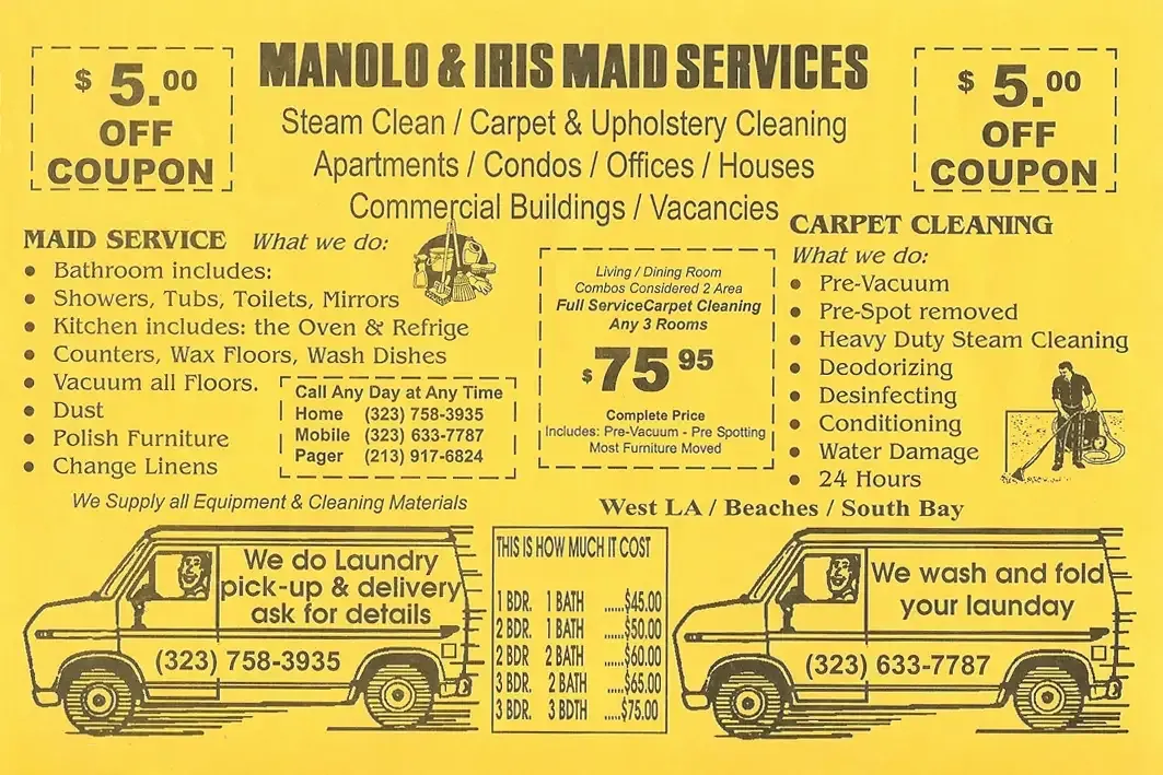 A coupon for Manolo & Iris Maid Services in 1998